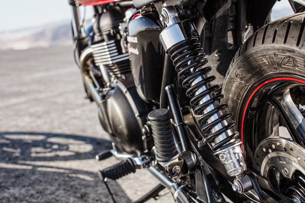 Su motor bicilíndrico en paralelo de 865cc y 68 CV de potencia se asemeja a los clásicos motores de carburación de de la época, pero el propulsor con doble árbol de equilibrado de la Bonneville T214 goza de la más avanzada tecnología y un sistema de inyección para lograr un alto rendimiento y fiabilidad mecánica junto a un bajo nivel de emisiones.